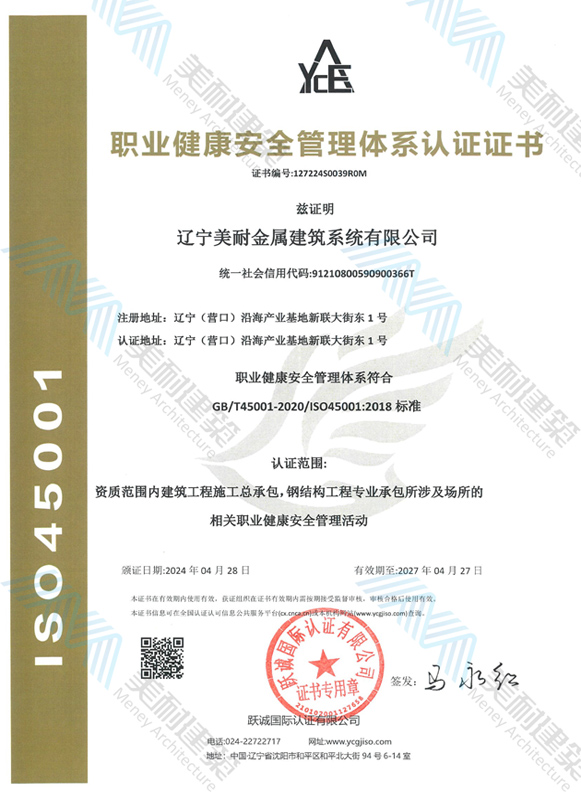 遼寧美耐金屬建筑系統(tǒng)有限公司位于遼寧(營(yíng)口)沿海產(chǎn)業(yè)基地,專(zhuān)注于預(yù)制金屬建筑系統(tǒng)領(lǐng)域,是一家集工業(yè)建筑設(shè)計(jì)、制作、施工及相關(guān)的技術(shù)咨詢(xún)與服務(wù)為一體的綜合性服務(wù)企業(yè)。作為國(guó)家鋼結(jié)構(gòu)協(xié)會(huì)會(huì)員、中國(guó)建筑金屬結(jié)構(gòu)協(xié)會(huì)會(huì)員單位與國(guó)家高新技術(shù)企業(yè),美耐建筑集建筑工程施工總承包、鋼結(jié)構(gòu)工程專(zhuān)業(yè)承包等多種資質(zhì)于一身,并擁有22項(xiàng)鋼結(jié)構(gòu)建筑領(lǐng)域?qū)@?項(xiàng)軟件著作權(quán)。